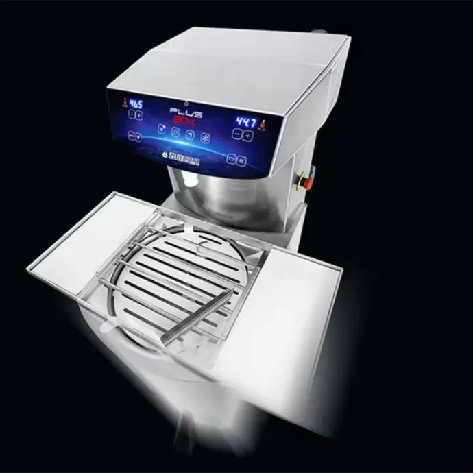 Plus EX is a new version of the chocolate tempering machine with removable screw pump and digital control panel . This tempering machine is differentiated on the market by a new patented system that allows the tempering screw pump to be removed in just a few minutes.